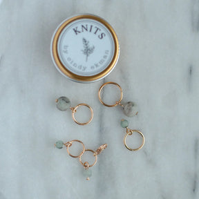 These lovely knitting markers from Knits by Cindy Ekman are handmade in Finland. Needle markers that sit on a ring are hung on the needle and are excellent for marking, for example, increases, decreases and the beginning of the round.