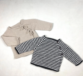 Olives Slå Om is a simple wrap cardigan for babies and toddlers. The cardigan can either be knitted with ties or buttons as a closure. Picot edges or regular folded edges can be knitted. Wrap cardigans are especially practical for newborn babies and cute for children of all ages.