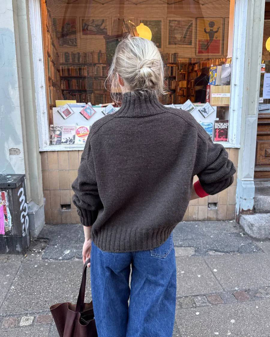 Den bruna Hannah Sweater O-neck är stickad i Atlas från Sandnes Garn i färgen Coffee melange [2381].