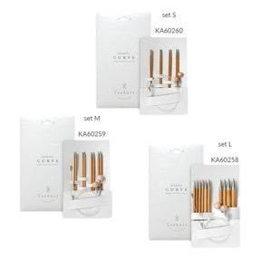 For the new CURVE Koshitsu interchangeable knitting needles and accessories, Seeknit developed the most user-friendly and comfortable interchangeable knitting needles. The result is a series of elegantly shaped, wonderfully smooth and durable interchangeable tips, cables and accessories. The products are made with durable materials and are available as single items, but also in various beautiful sets.