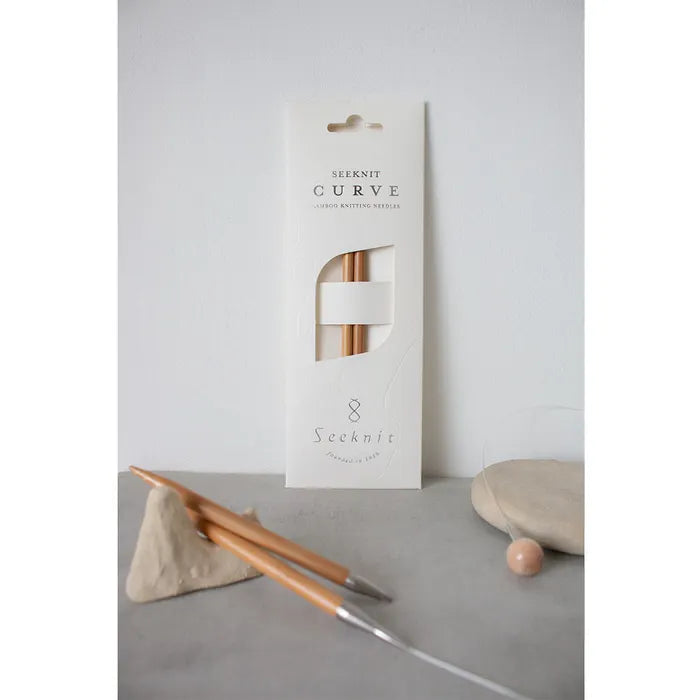 CURVE Koshitsu-ändstickor från Seeknit är gjorda av högkvalitativ bambu. Koshitsu-stickorna genomgår en högtrycksbehandling vid hög temperatur och poleras sedan noggrant med naturligt växtbaserat vax. Detta gör stickorna mycket hållbara och skyddar dem mot yttre påfrestningar samt förhindrar att stickorna böjs med tiden. Det skapar även en jämn och slät yta. De lätta stickspetsarna ligger bekvämt i handen och det naturliga materialet känns behagligt varmt mot huden.