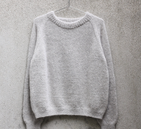 It's Not a Sweatshirt is a simple basic sweatshirt, inspired by the classic sweatshirt. The sweater is knitted in the round from top to bottom with a double neckline and raglan increases. The neckline is formed with shortened rows, the pattern uses German Short Rows as a technique. The sweater is knitted in one yarn Merino and one yarn Soft Silk Mohair, and it can be knitted in a variety of delicious color combinations.