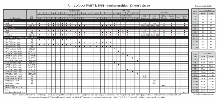 Chiaogoo's legendary Twist lace knitting needles set contains everything you need to build the perfect knitting needles. Here you will find end sticks in several sizes, cables in different lengths and necessary accessories.