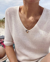 The white Cumulus Tee is knitted in Pure Silk from Knitting for Olive in the color Fløde.