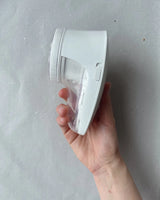 PetiteKnit's pilling machine has sharp, rotating blades that easily and gently remove pilling from your garments that occurs naturally with use. The pilling machine has a collector that can be easily clicked off and emptied. The machine is battery-operated so it is easy to take with you on the go.